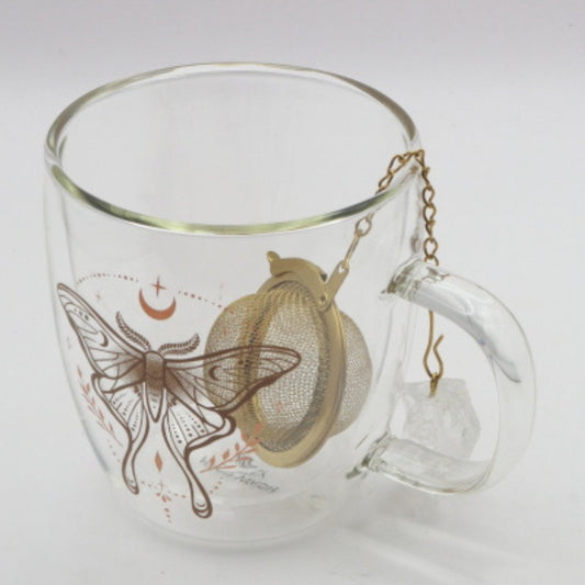 Luna Moth Double Walled Glass Mug and Crystal Tea Infuser