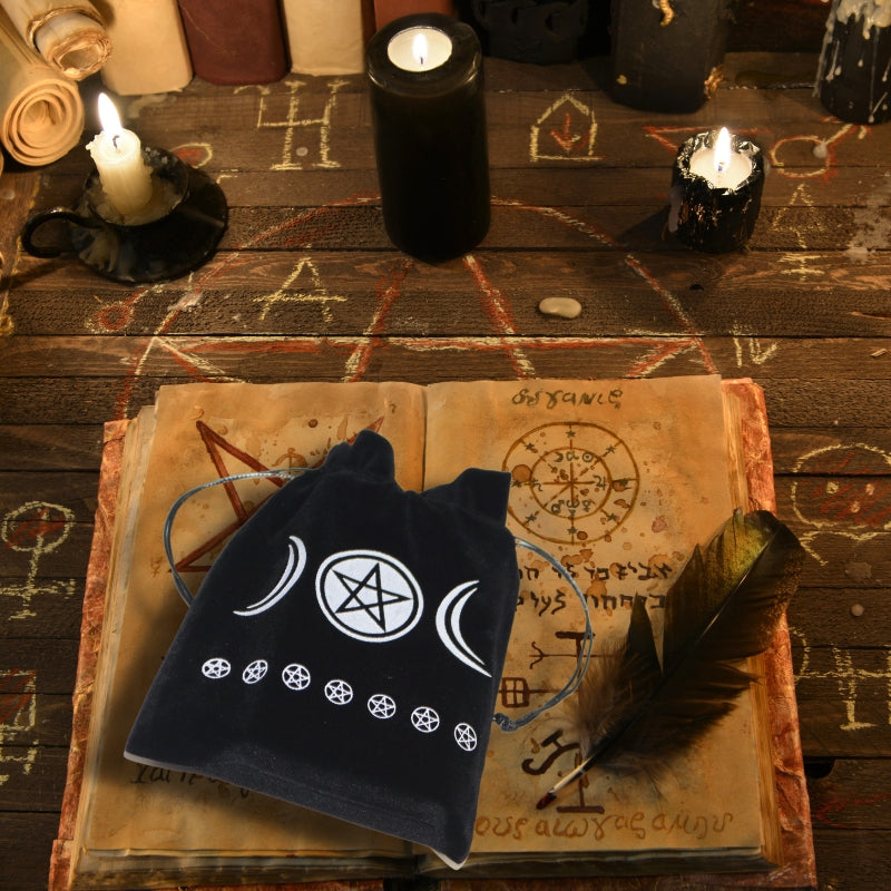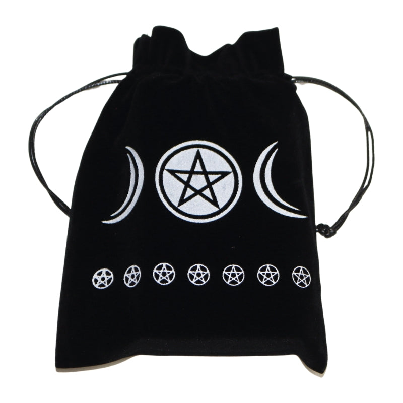 Black Triple Moon Pentagram Wiccan Tarot Bag for Tarot and Oracle Cards 13cm x 18cm