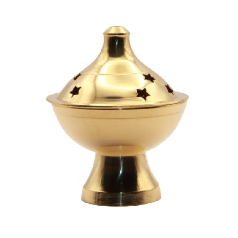 Designed to hold regular incense cones, as well as charcoal and resin, this brass incense burner is an ideal accompaniment to your magickal, spiritual and meditation practices.