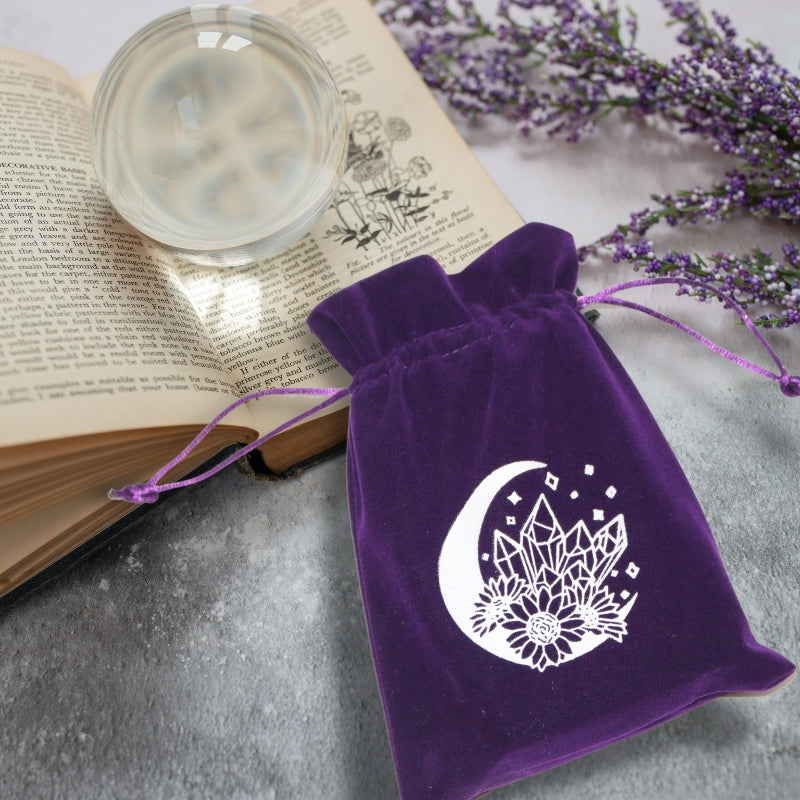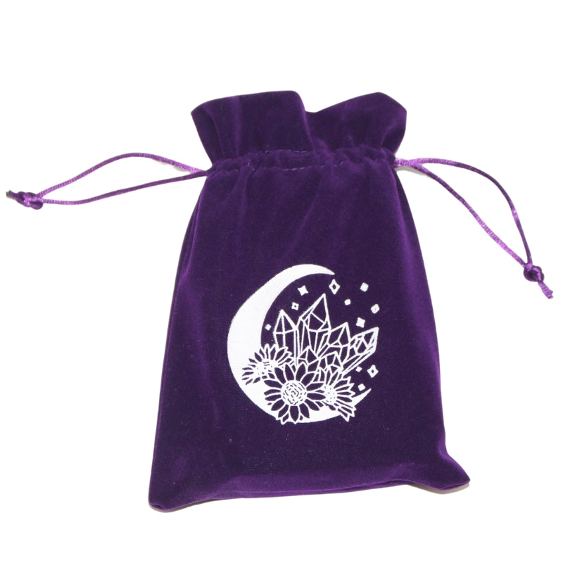 Crescent Moon, Flowers and Crystals Velvet Tarot Bag for Tarot and Oracle Cards 13cm x 18cm