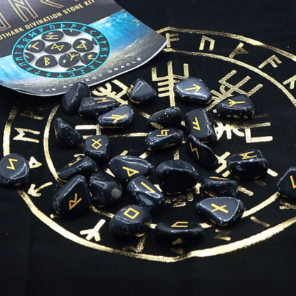These gold embossed black obsidian crystal runes are perfect for anyone with an interest in Norse history and divination practices and would make a great gift.