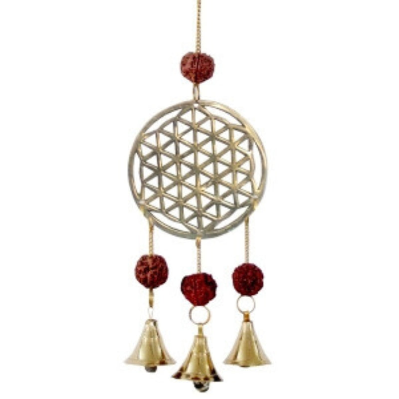 28cm Flower of Life Hanging Bells with Rudraksha- Wind Chimes/ Protective Ward