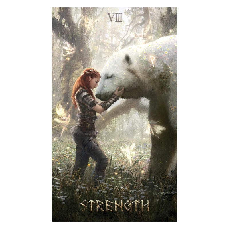 Valhalla: the Realm of the Gods. From the author of the Heaven & Earth, the Runic Tarot is the ultimate deck created over Norse mythology. This deck is a powerful, fierce holder of an ancient aura. It weaves together the wisdom of the Runes, the poetry of the Skalds, the valour of the Einherjars, and the evergreen bounty of life and nature. Runic Tarot is a tribute to the divine spark within humanity.