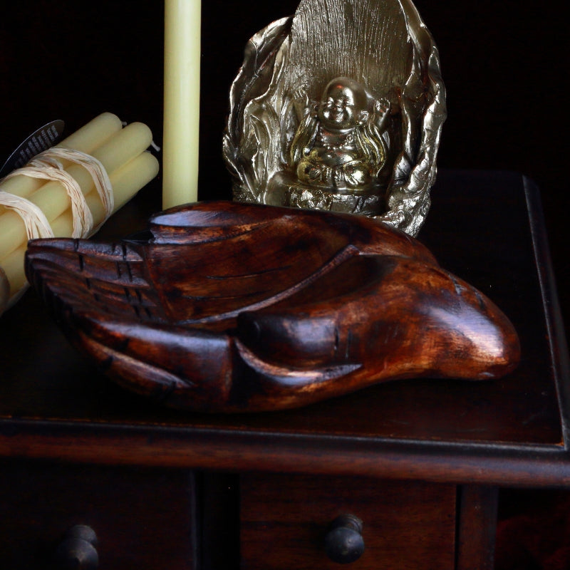 This rustic carved open hand wooden bowl is a beautiful and functional addition to any altar, sacred space or home decor.