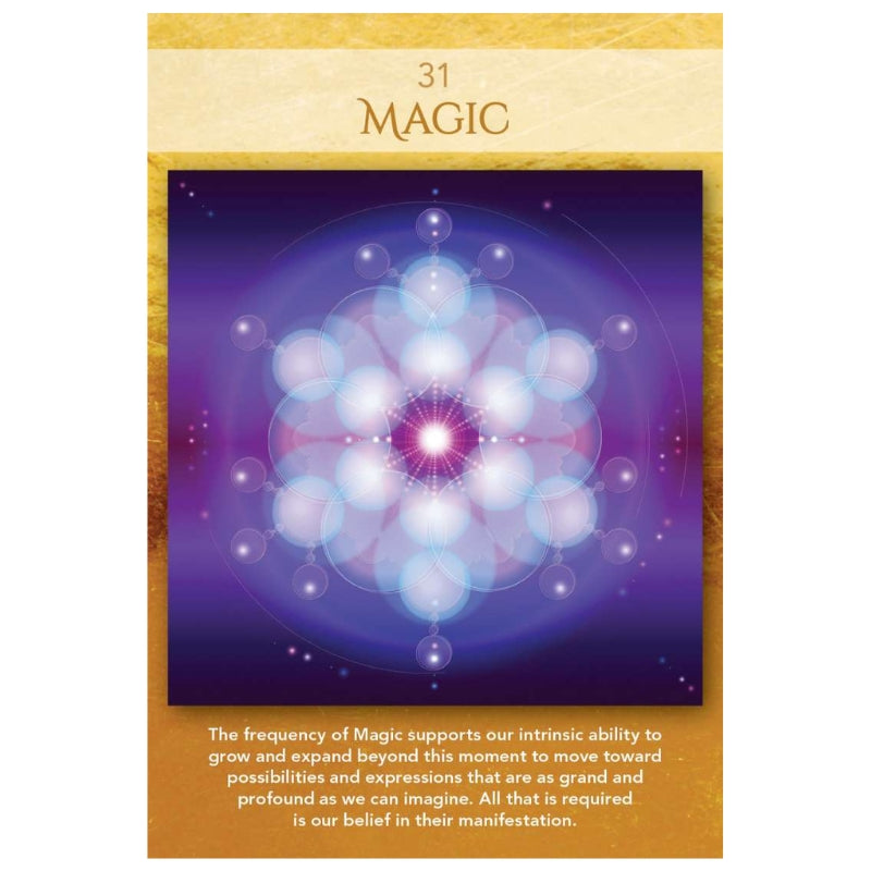 Plato referred to sacred geometry as the language of the soul. For thousands of years, sacred geometry has been a part of every culture. It is the bond that connects us all to the cosmos; it is the true design of our soul. Sacred geometry is the blueprint of creation at the core of all form even at the core of you. Quantum artist LON has created 44 Activations that encourage your analytical mind to step aside so you can enter the domain of the subconscious and the soul, and connect to the quantum field the space of infinite potential. Working with these cards on a daily basis will help you to think outside the box, create a deeper sense of peace in your life, and become a powerful conscious creator.