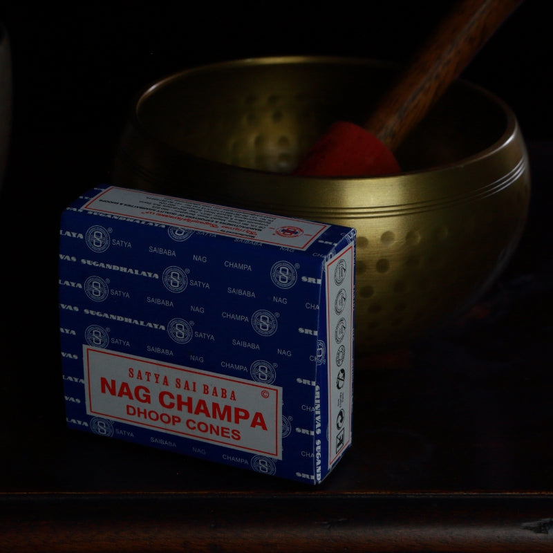 Satya "Nag Champa" Dhoop Incense Cones are an oriental & floral combination of Sandalwood, Champaca, Frangipani & Magnolia.