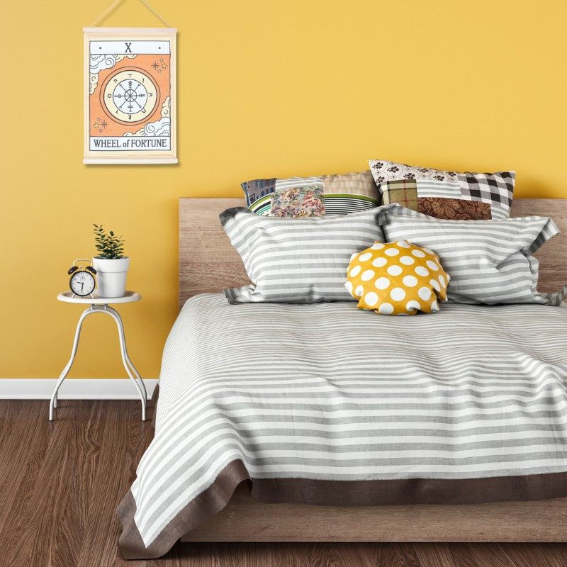 This gorgeous wall hanging could be just what you have been searching for! This wall hanging depicts "The Wheel Of Fortune" tarot card in a vintage style print.