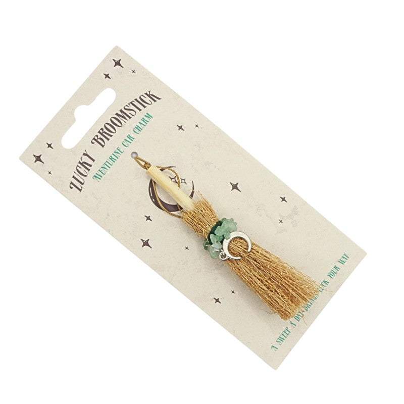 Lucky Broomstick- Green aventurine and crescent moon "A Sweep A Day Brings Luck Your Way"