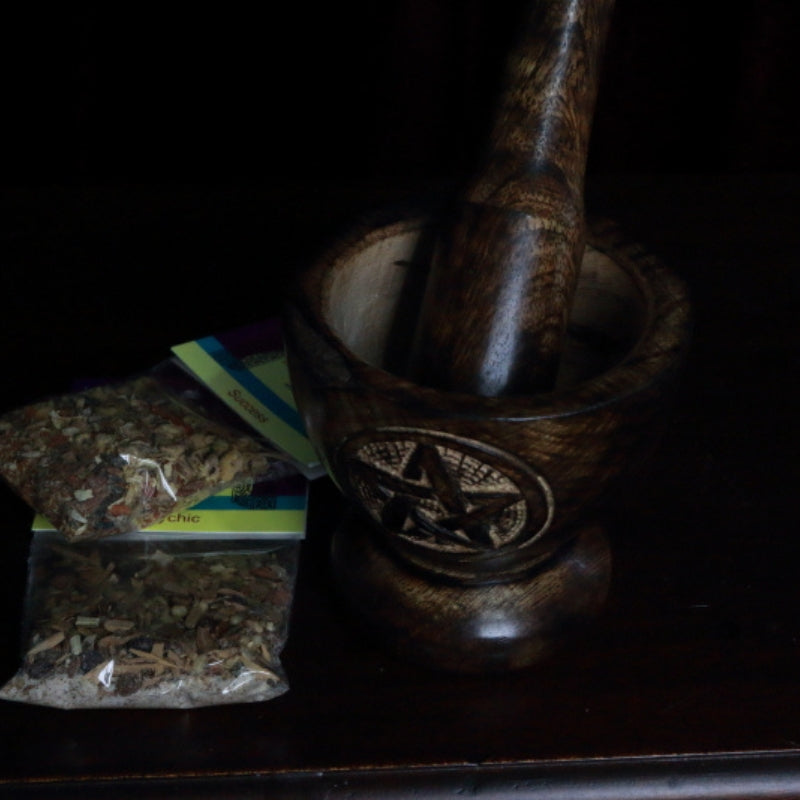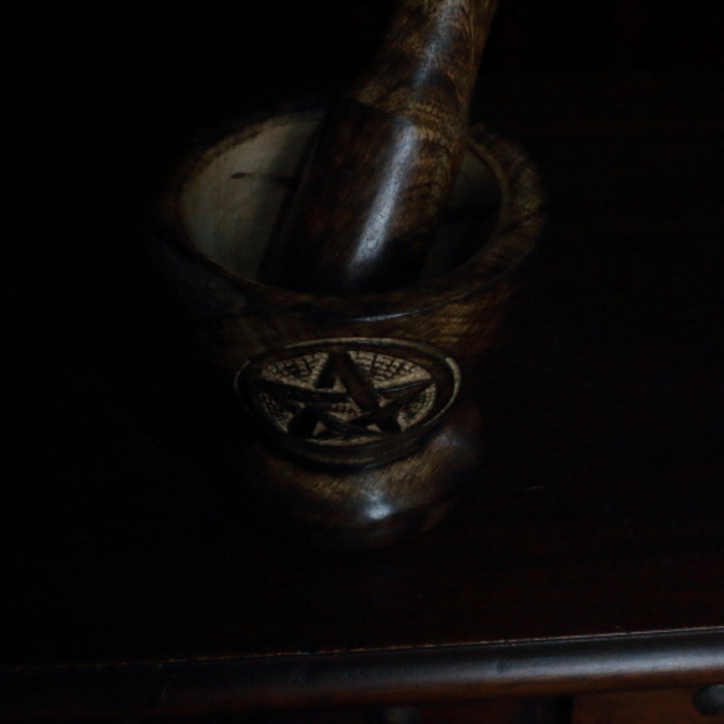 Wooden Pentacle Engraved Mortar & Pestle