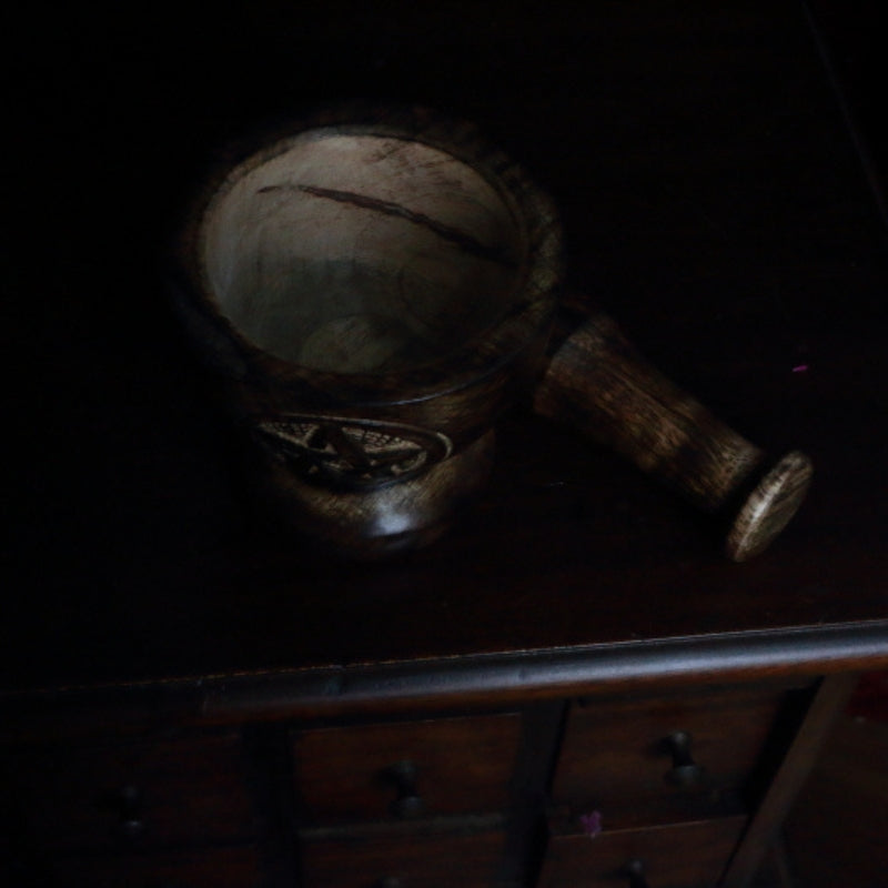 Whether you're looking for a way to enhance your plant magick, or simply want to add a touch of rustic charm to your home, this wooden mortar and pestle is perfect.