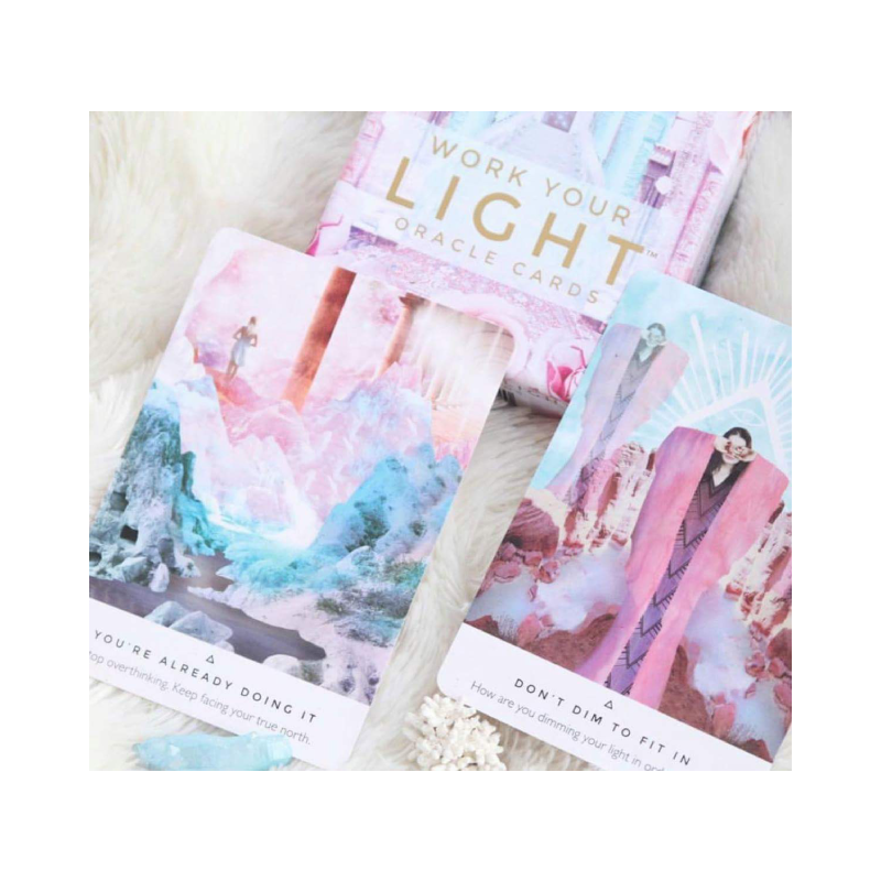 New from best selling author Rebecca Campbell (Rise, Sister Rise), Work Your Light Oracle Cards are a beautiful oracle card deck from a bestselling spiritual teacher, designed to help you strengthen your intuition, hear your souls messages, connect with your purpose, and light up the world with your presence.