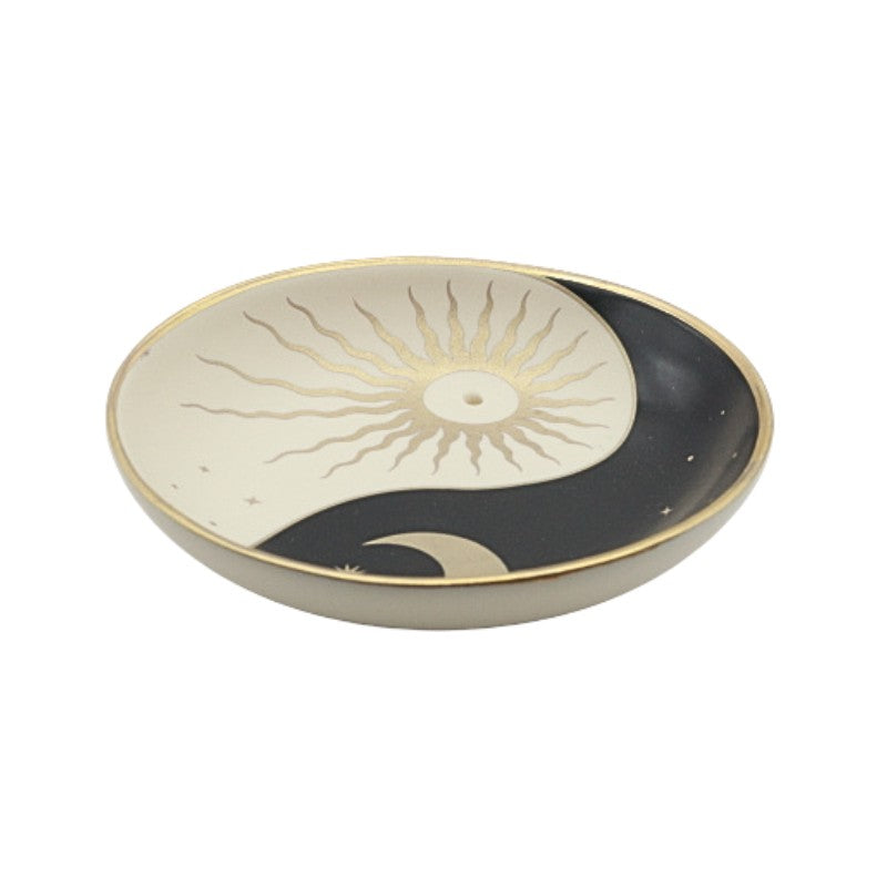 Measuring 9cm in diameter, this yin yang incense stick holder/ ash catcher is perfect for adorning your altar or sacred space.